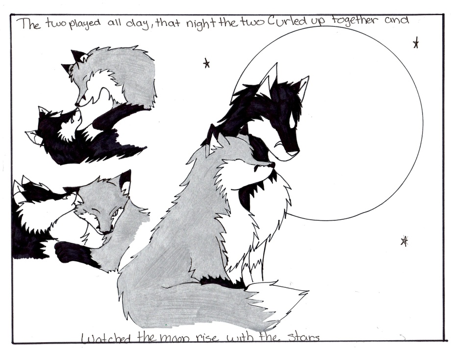 "Wanting to join in on the fun, Rain transformed into a black fox and ran after her"