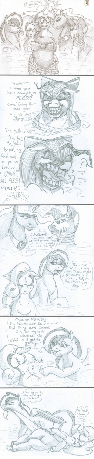 As I go through the questioning of myself as to whether I want to continue drawing or not, I did this quick little blurb comic. It's in no way cannon to Dreamscape and other than my very poor attempt to mimic Baroncoon's style is in no way connected. Well, other than the fact he actually inspired me to draw ponies without the exchange of money involved. XD