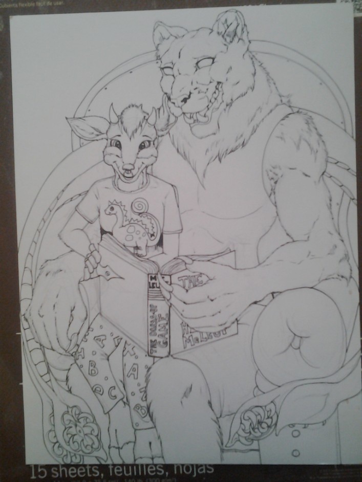 And here is the inked version of the sketch from one month ago. Stay tuned for the final pic by dragonflybunny. (to find on FA) And yes. They are reading the novel from the comic: The Dress-up Game. :)