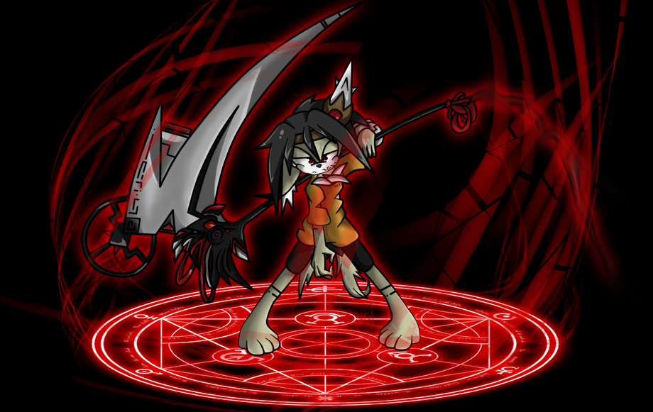 Xetz can create, summon, manipulate and use any kind of weapon with perfect skill, regardless whether the weapon is muscle-powered sword, spear or bow, gun or cannon any description or even something futuristic using laser, plasma, antimatter or even more exotic ammunition/attacks. If it is weapon or could be improvised as one, user is completely proficient with it. The Weapons he summons or create mix with magic and technology. It can create disks (Magic Circles) that act as shields, or stepping stones.