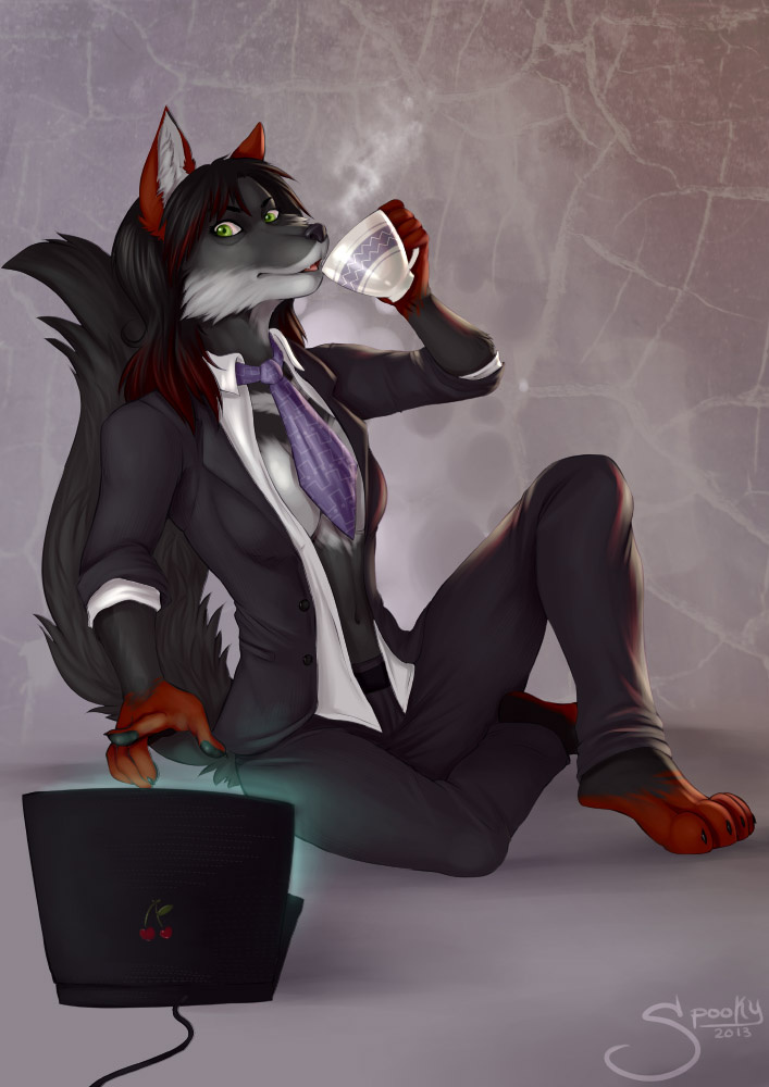 Commission for Vixe -- if you're going to spend the night awake, charged only by caffeine, best to do it in style.