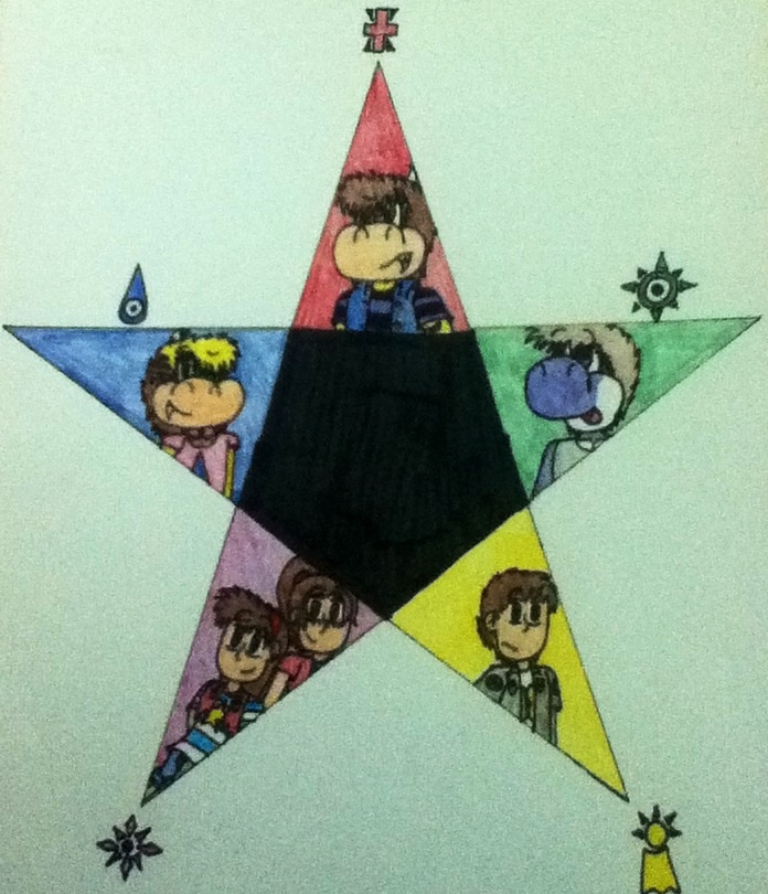 In the red, it's Razor. In the blue, it's Blake. In the green, Xavier. In the pinkish-purple shard, BFFs Tatl and Luluza. And finally, in the yellow, Keish