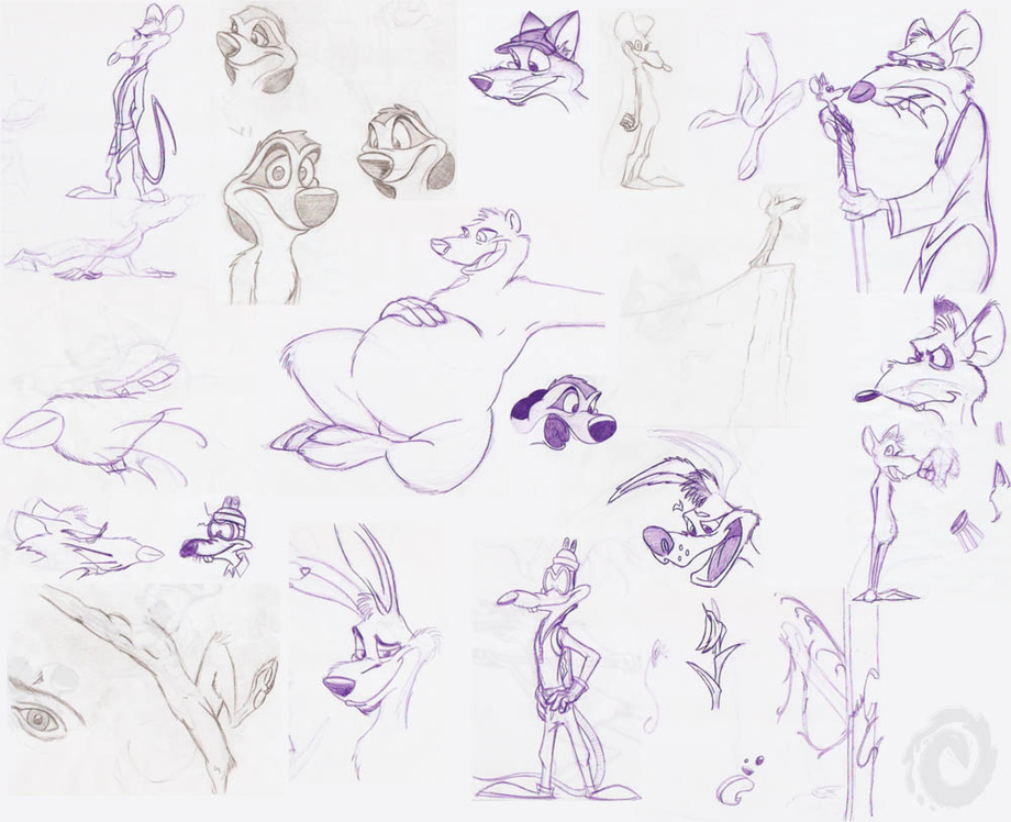 Continuation of the Sketch Dump! This one has lots of Timon, four Splinters, two Megavolts, a kangaroo, a coyote, a bear, a few other rats and a partridge in a pear tree. And a dog...thing. And some flowers. Yey. It's been dumped!