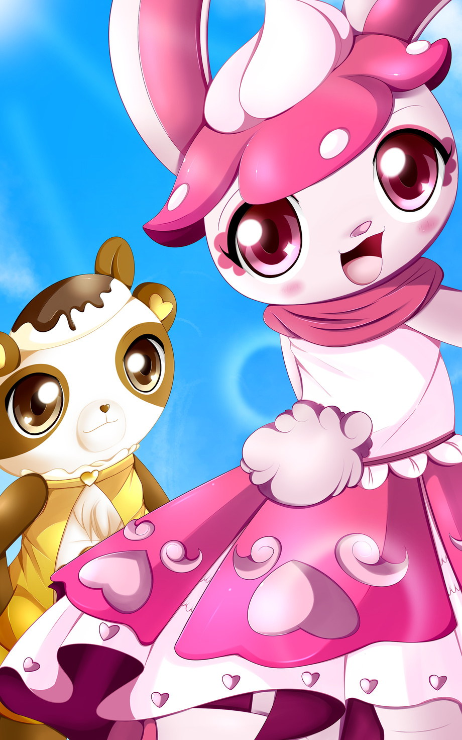 My own interpretation of the characters from the Chiname Sweets Fairy, all drawn and posed together. I am gonna make and each having two characters each. This one itself pretty much took me some time to complete, trying to achieve some sort of softer shading on the main body and a more finer one for the clothing. This one may end up looking a bit poster-like. Obviously, all of my pics were already of that kind.