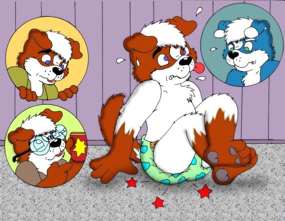 Spaniel: (blushing) i dunno... it may be embarrassing for me in these kinds... i rather wear spike collars other then diapers. i had several of those collars you can wear, even though some of them are cute and some of them are sharp.