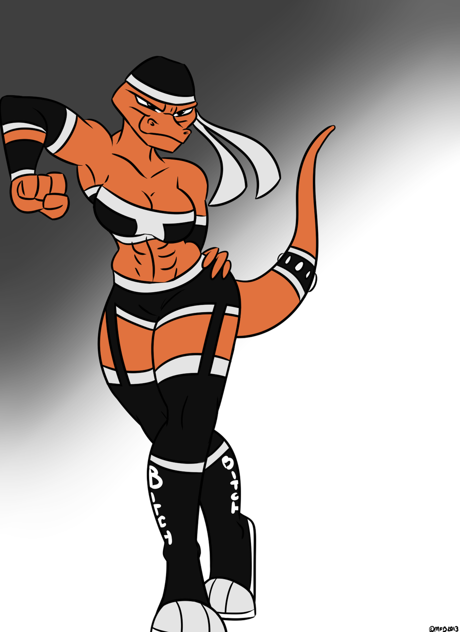 A type of pinup I thought of for Tammy in her alternate fighting gear. Sorry if I don't have much.