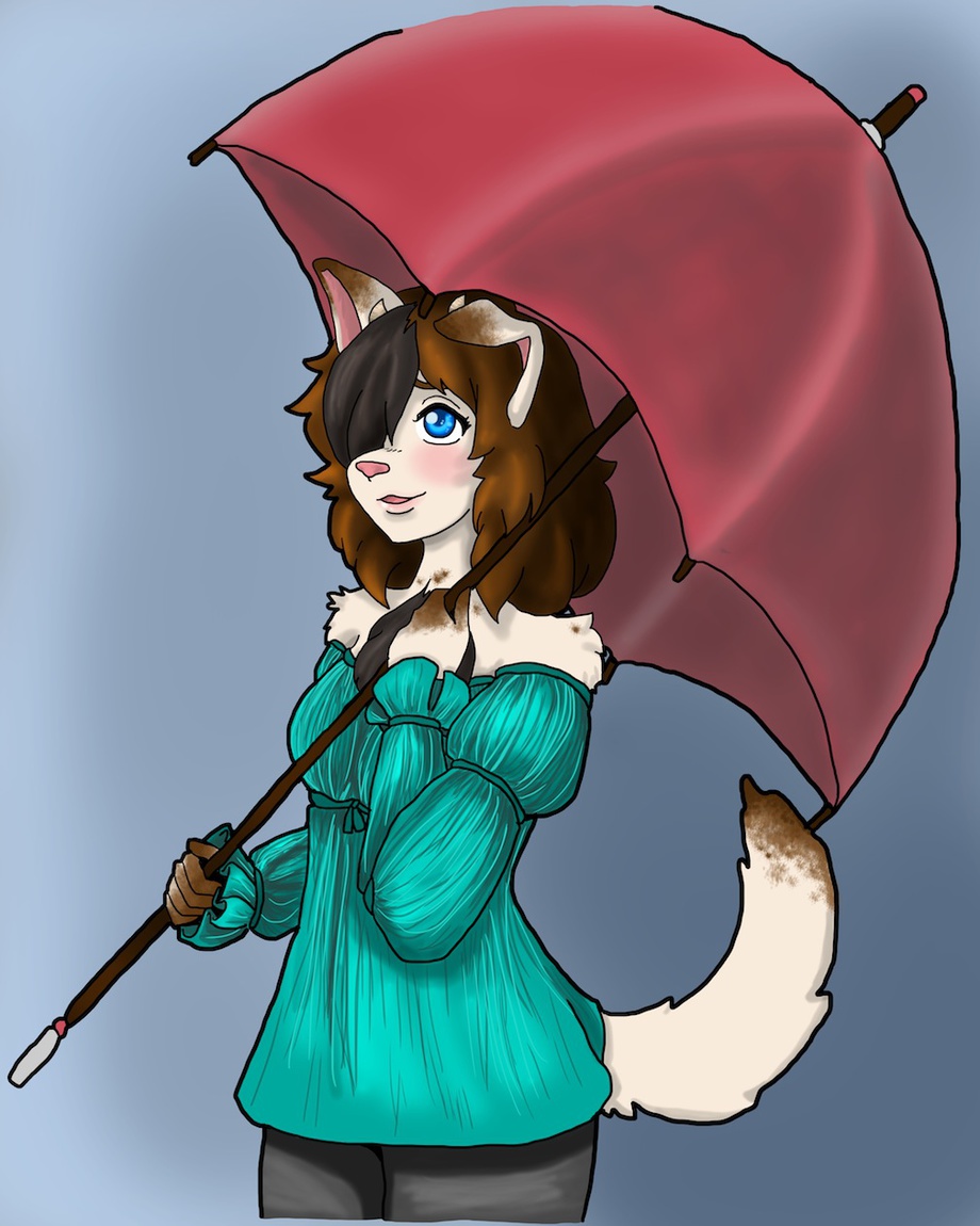 My fursona and her umbrella. It was raining on that day so, I thought to draw her in the rain with an umbrella.