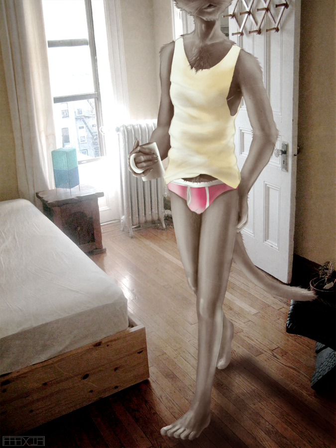 Pink undies! =D And nice job merging your art with the photo. ^_^ Your actual bedroom?