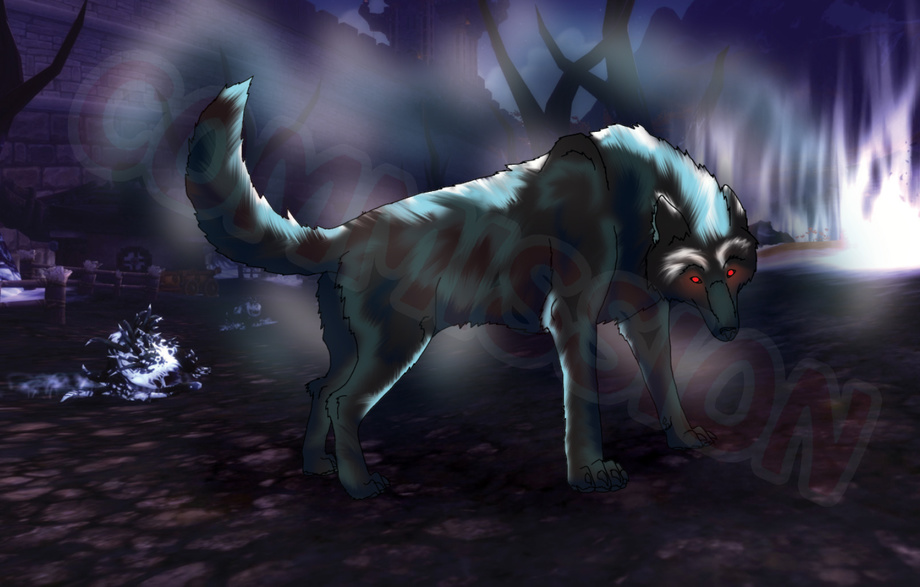 A wolf inspired by the Sha of World of Warcraft. An in-game screenshot is used for the background.