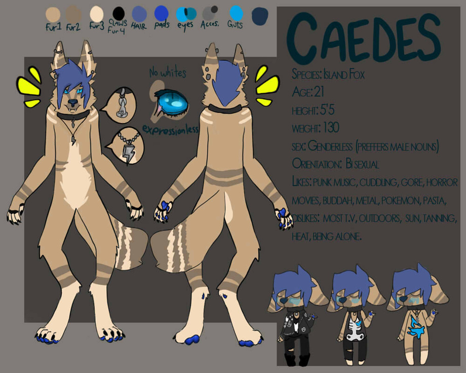 he is very over dramatic and loves cuddling. hes a punk addict and loves metal. he loves horror and has blue goo for insides