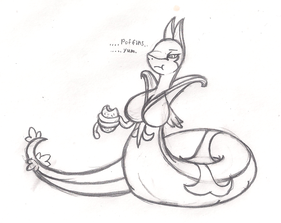 Hi, just really wanted to get something of an old Serperior girl I've got out. Ivy is back and she's munching on a tasty poffin. =w= Also tasted out trying to make for a slightly thicker more squishy look to her body. so hopefully I gave her a bit of a softer look to her. :3