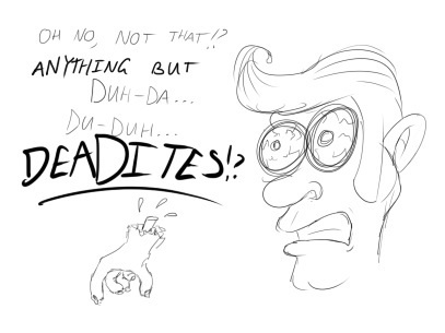 ... so I couldn't think of anything particularly clever... but whatevs, I'm working on other stuff. This is just to keep up with my daily drawing thing. So far so good, no? Heh. Speaking of the Necronomicon, though... heh. Hehe. Muahahahaha!