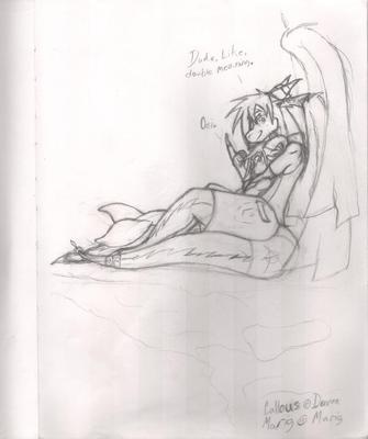 When I was drawing this picture, I was going to draw Marig in another standing pose, but then I decided to draw him with his little sister Raith. Raith the Dragsune was originally one of my characters before Marig came along, but I gave Raith to a friend of mine who became my RP little sister.