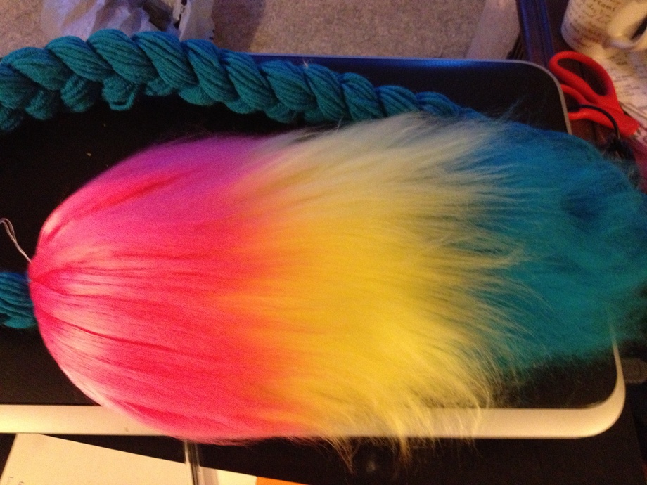 tail is 44+ inches. no idea how long it will be when done or how long its going to take to make.
