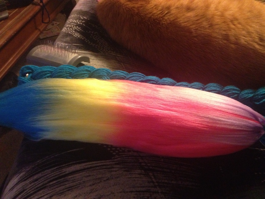 the other yarn with the tail is the colours in it. this tail will be sold if the price is right.. will not be cheap as its huge