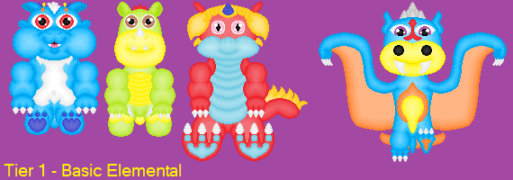 More pup dragons, this time the second tier advanced elementals. From left to right they are Poison, Energy, Ice, and Time.