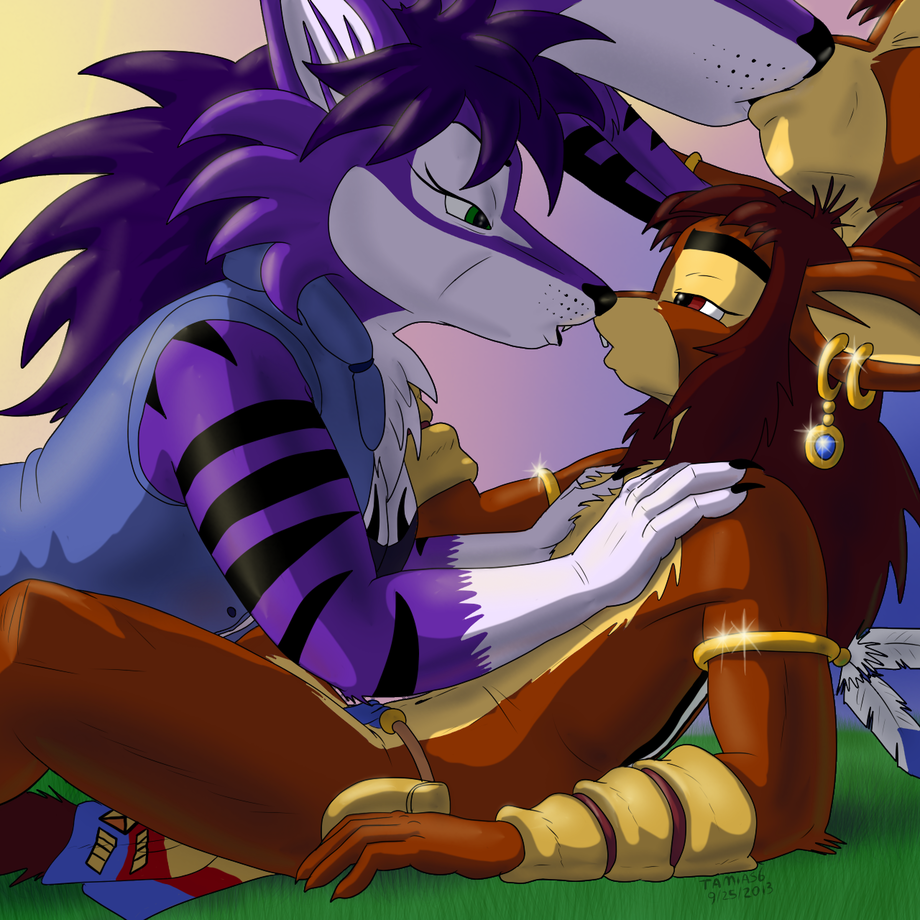 Decided to do a new version of me and Wolfee Darkfang sharing a romantic moment and a deep kissy. Also wanted to try out doing an inset panel to highlight the lip locking X33