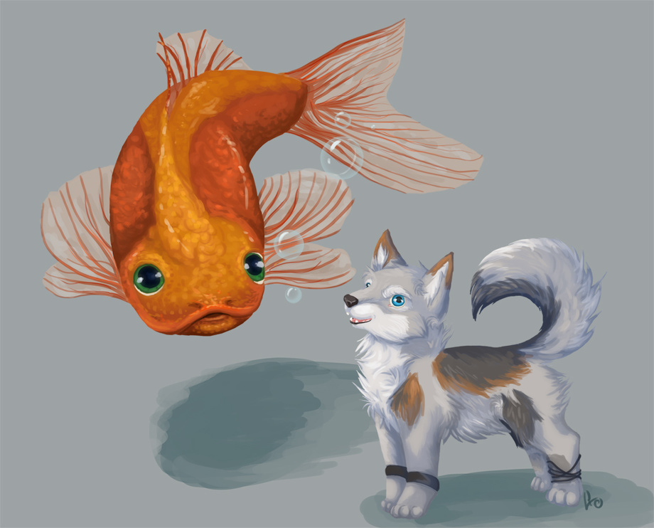 Mainly drew this because I like the design of the characters^^ and the idea of a giant flying goldfish was a little to fun to not try.