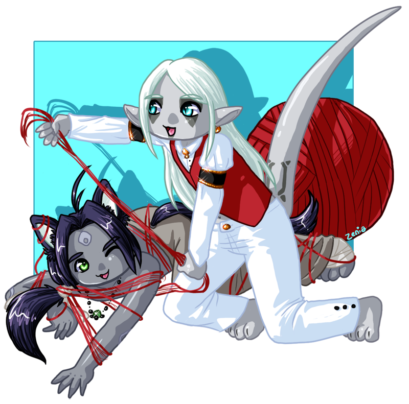 IRL commission for a guy on Gaia Online. These are both his characters.