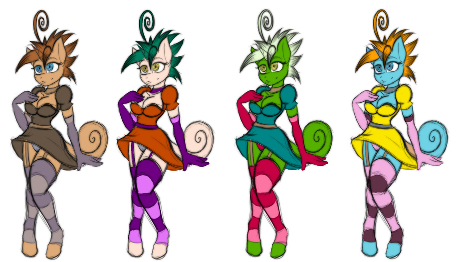 I think this was a request on lulz to make some color options for this character. The far left one was the initial one I came up with and the others I was just playing around with different pallets.