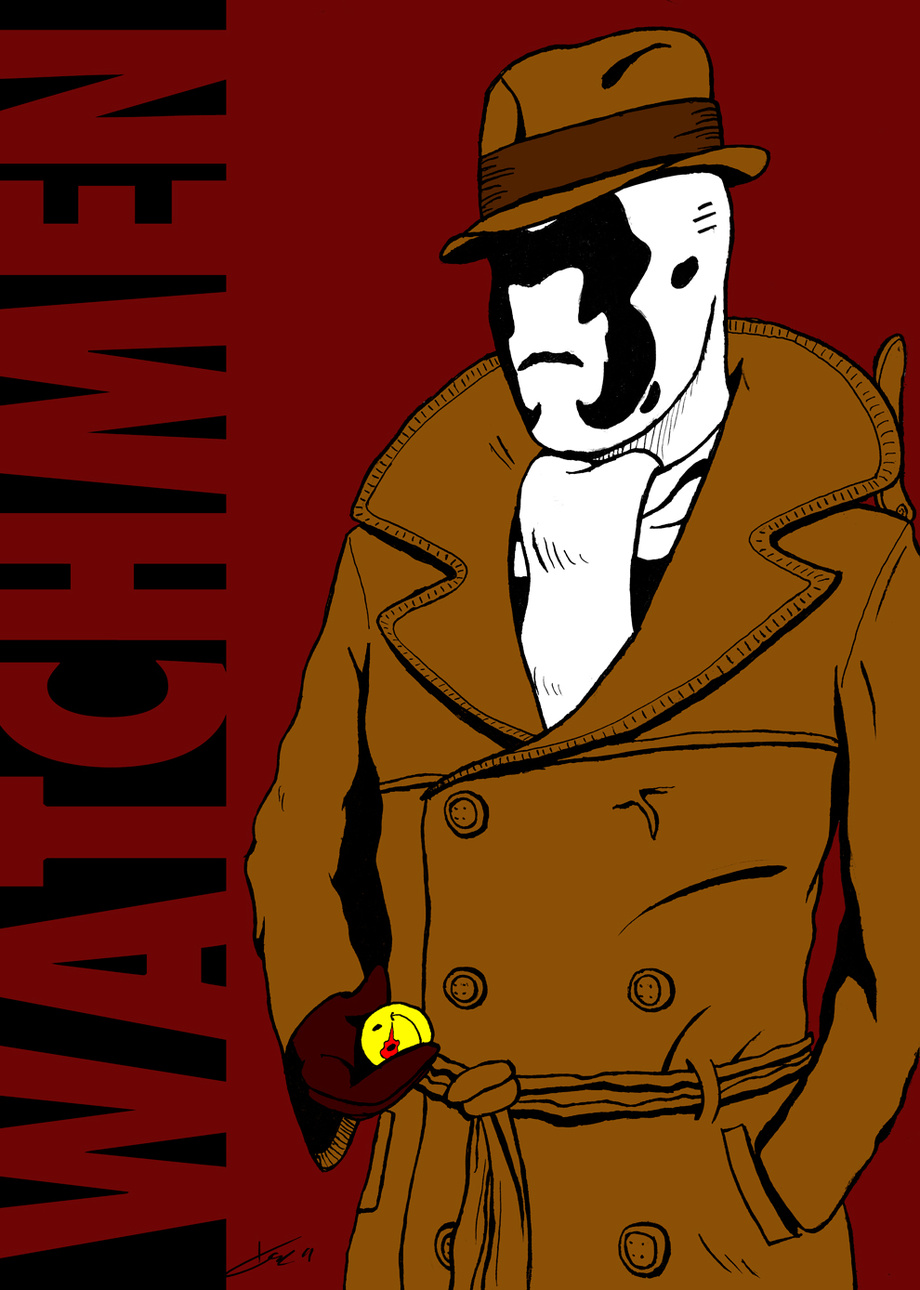 Entonces me he animado a hacer el entintado y el relleno negro a pluma, menos el negro donde pone Watchmen.