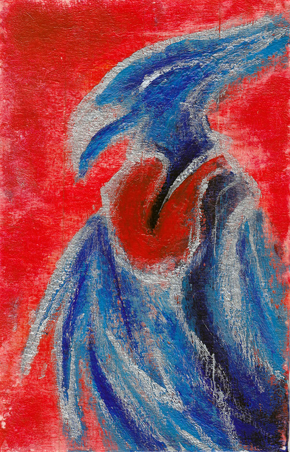 PVA glue, paint and silver gel ink, on paper covered in masking tape.
