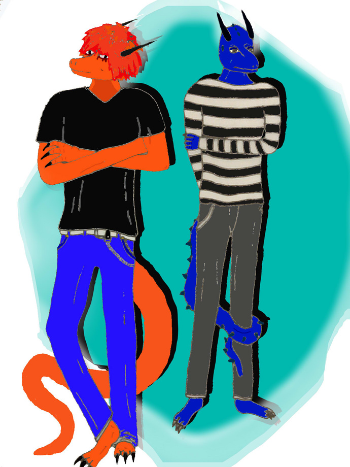 a pic i did for my friend Xeno (the blue one) with me in my badassness