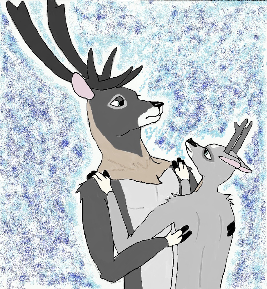 I love foreign films! The characters you see, Turgun (left) and Tangene (right), are from the classic Russian animated short film entitled, "Храбрый олененок" (translated as "The Brave Little Deer") from Soyuzmultfilm, 1957.