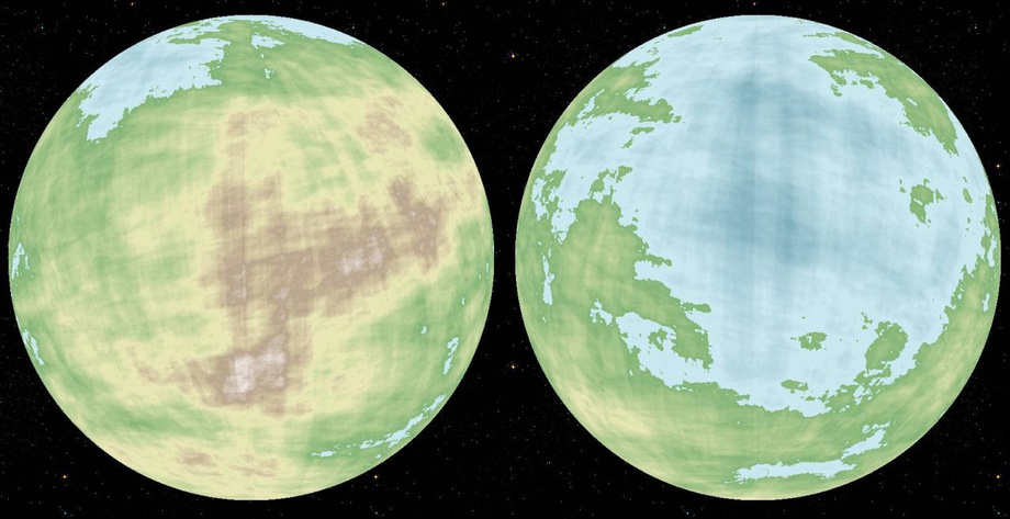 H'blen's day is approximately 49 Earth hours in length, and it's year is 986 days. There are two moons orbiting the planet, Gusuk and Psig. The largest moon, Psig takes 65 days to orbit the planet and has a rotational period of 3 days, it's gravity is 3/5 that of H'blen's. The smaller moon Gusuk takes 15 days to orbit the planet and like Earth's moon does not rotate and has one face towards the planet, it's gravity is approximately 1/10th of H'blen's.