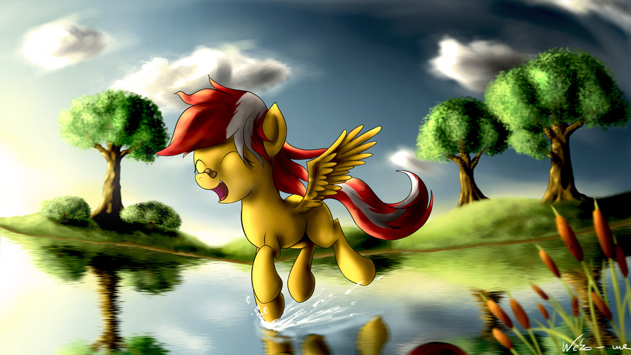 Commission for Jeynaelgren (on DA) featuring their OC, Tailspin, a filly pegasus.