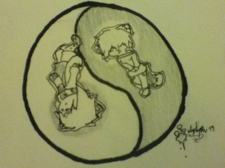 This is something I did for my best friend today. Kai is one one side of the yo g yang, and Aven (my friends OC and Kai's brother) is on he other, showing the balance between the two siblings. The outer color represents what feeling hey bring to each other and others around them, and the inside circle around their heads shows the true thoughts that are supressed by the and hope no one asks about.