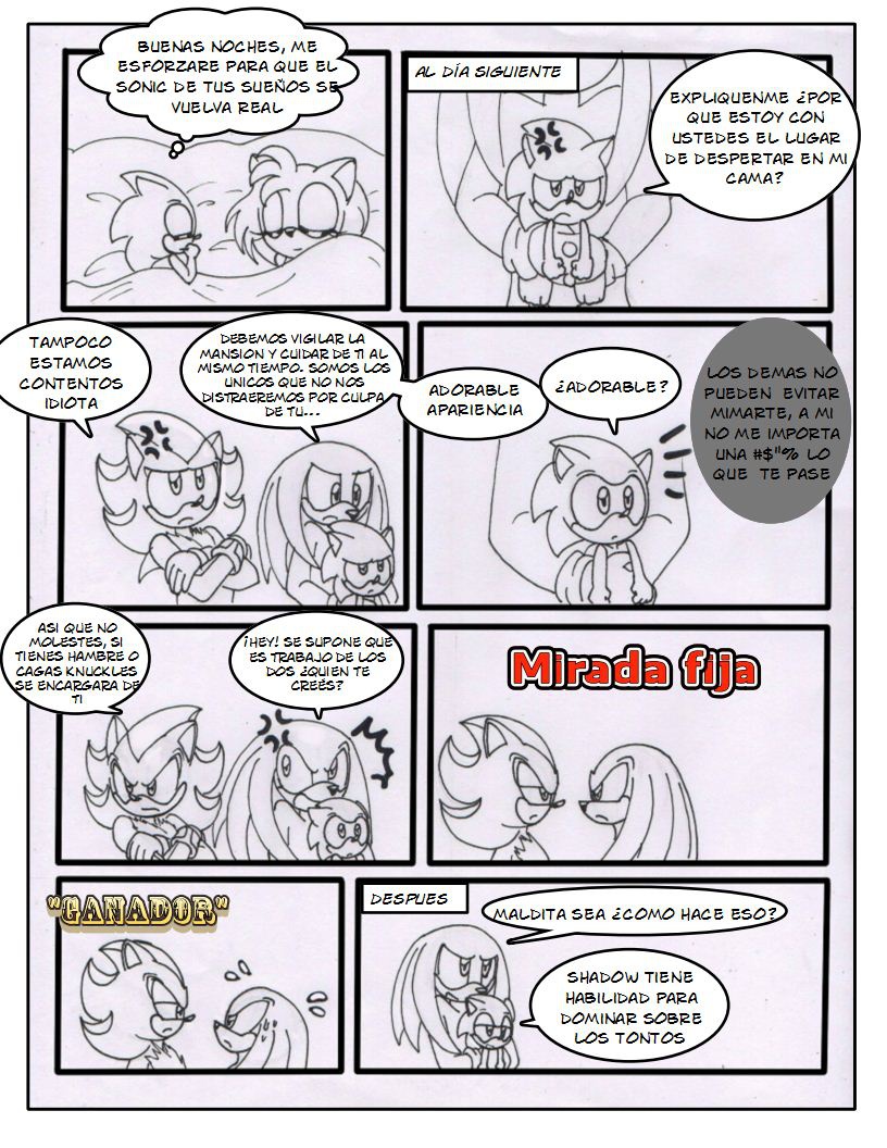 Pues en esta escena Shadow le grita a Knuckles y a Sonic provocando en este ultimo el desagradable recuerdo que tuvo anoche jejeje. Shadow se asoma a la ventana... y por primera vez se asustara como nunca antes en esta historia, esperenlo n.n