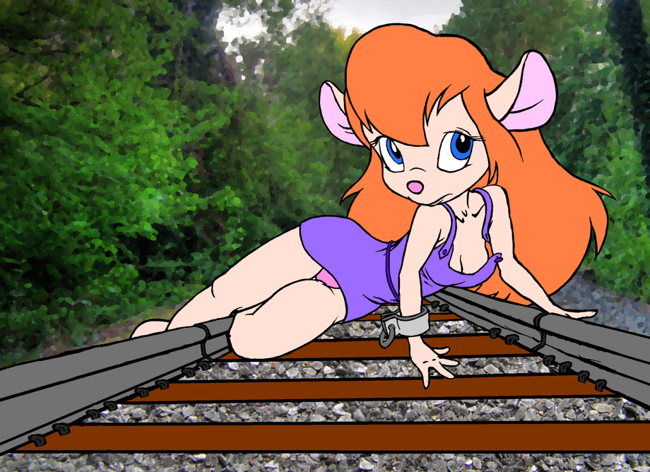 Her only hope is to get off the tracks, or hope a train is not scheduled to come by until after some