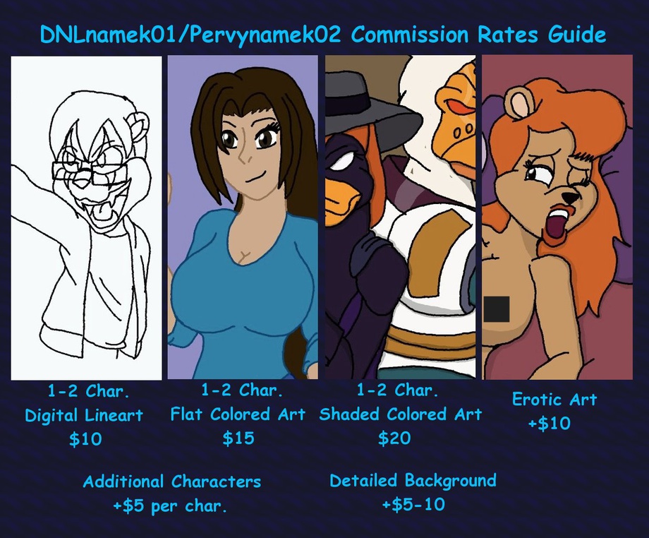 An additionally factor is if your commission involves one or some of my characters, you will receive a $5 discount on the picture.
