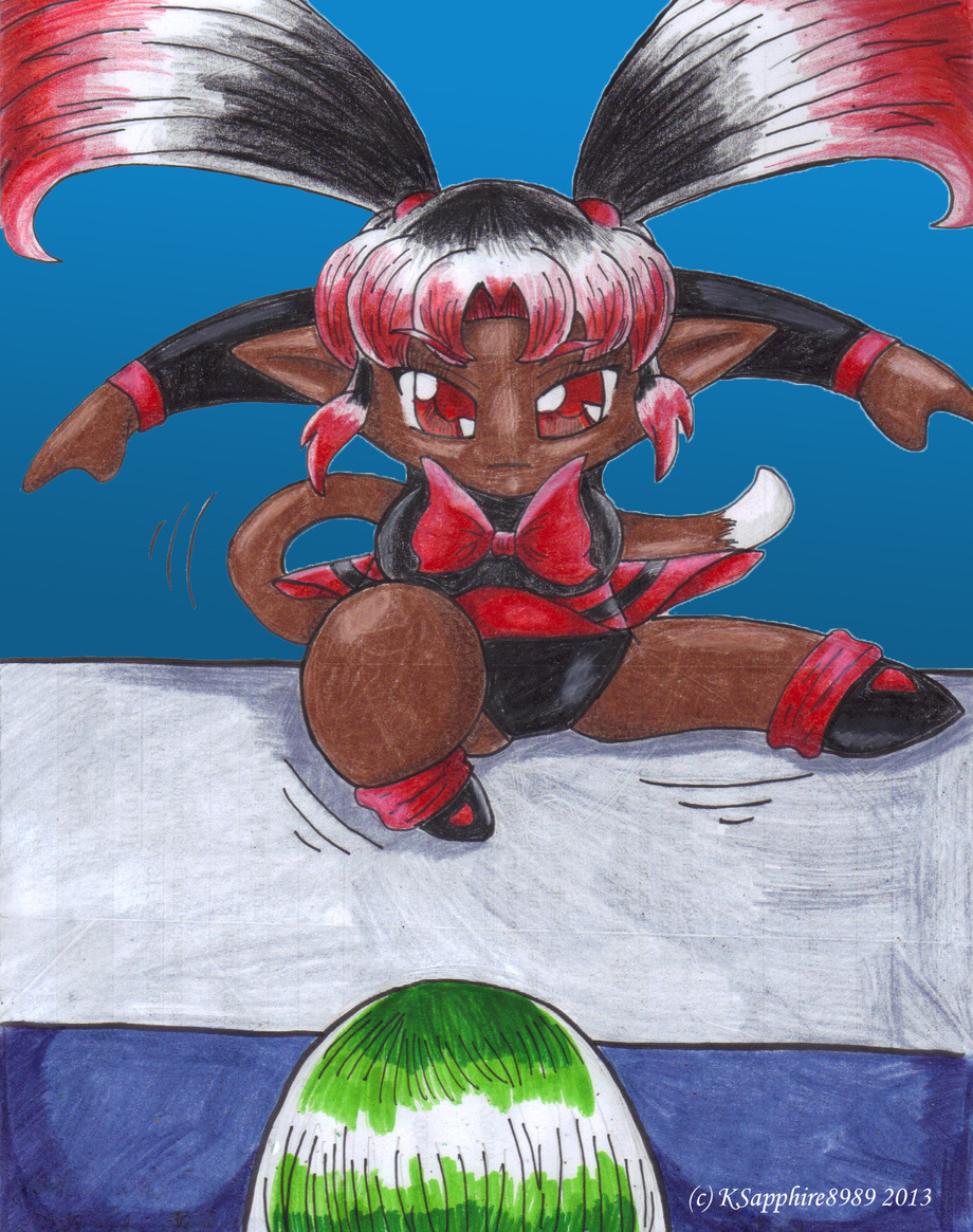 Artist's note: I was inspired to a chibi picture, and I felt Ki How doesn't get as much picture time as her twin Kitty. So here she is about to kick somebodies head in. I'm really liking how Ki How came out but the background is just okay. I felt the head in the front should have been bigger and the lines to a possible building isn't really straight. So I guess better luck next time. *mews softly*