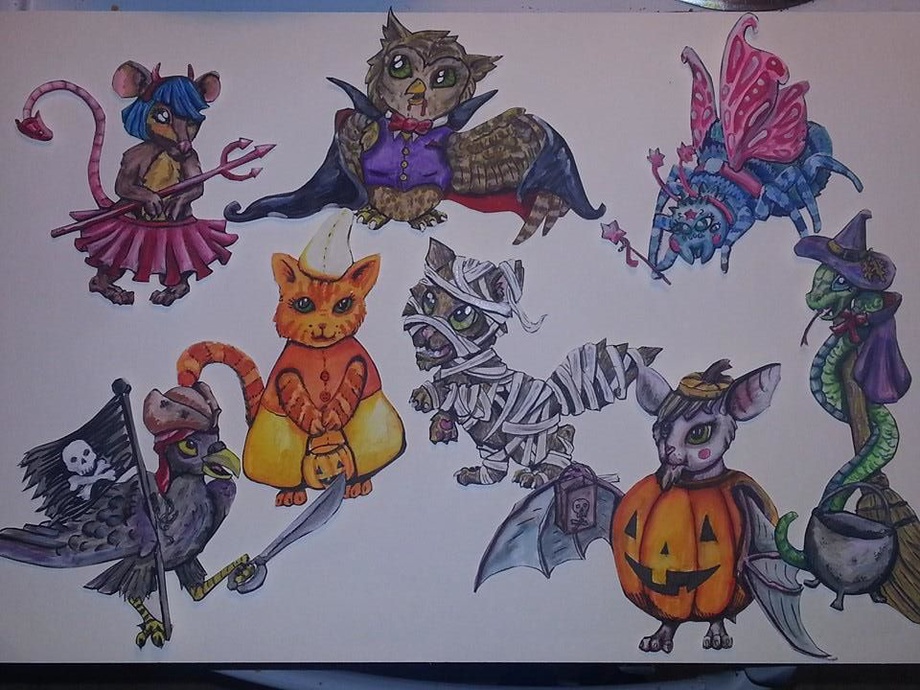 Well, there's the Creepy Cuties series for my Halloween card this year all done - now I have to get a GIANT sheet of paper & do the background Autumn Harvest Festival scene for them to be collaged into.
