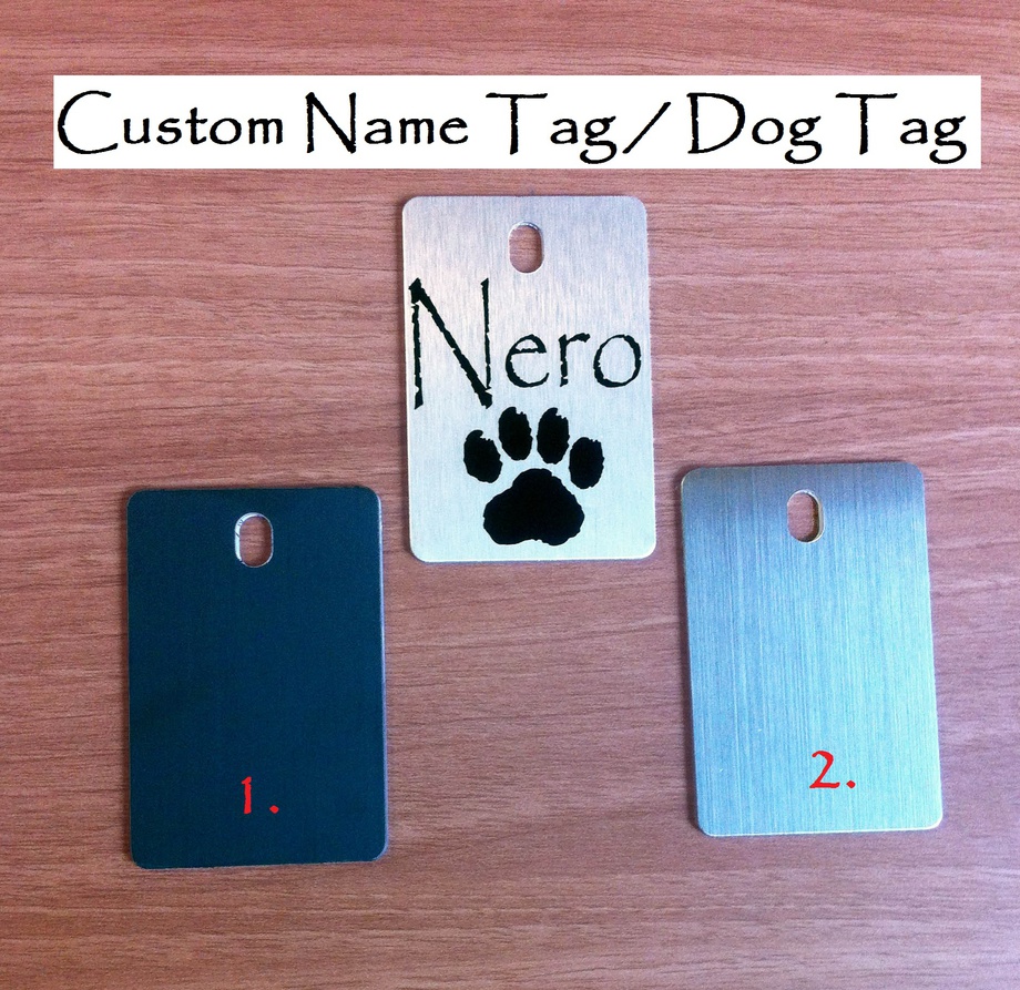 Can put anything you want on them front and back. Names, species prints designs just let me know. Size is 2.5" tall by 1.75" wide and 1/8" thick so it is durable.