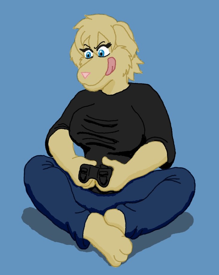 Here's just a simple pic of Eva playing a video game. Not much else.