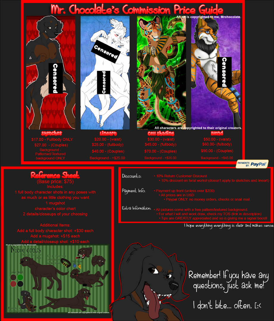 Mr Chocolate's Commission Price Guide 2014