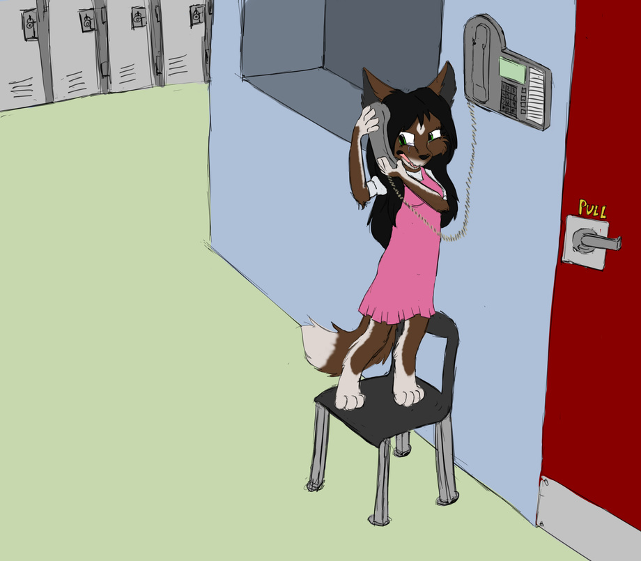 I was just told to draw this character standing on a chair talking on a phone with an angery/distressed expression.