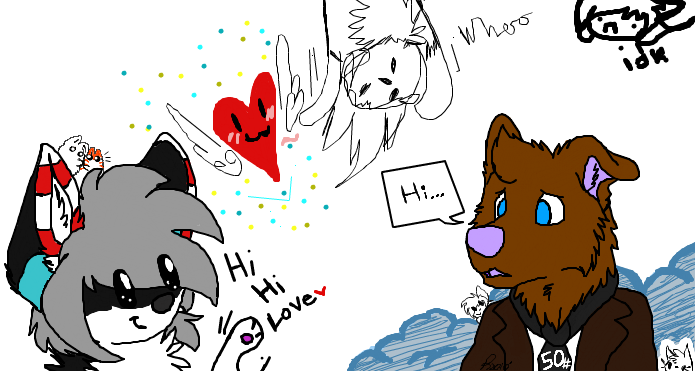 redchibi exchanging hellos...lil Camosistah in the corner and on yoshis head~ <3 ;c *chibihugs camosistah*