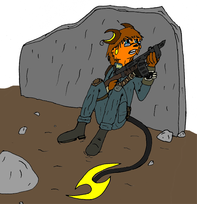 A trade for Raichumorph on FA, who I'm not sure is on IB or not. Anyway! He asked for himself drawn in some Fallout gear and whatnot, and this was the result~