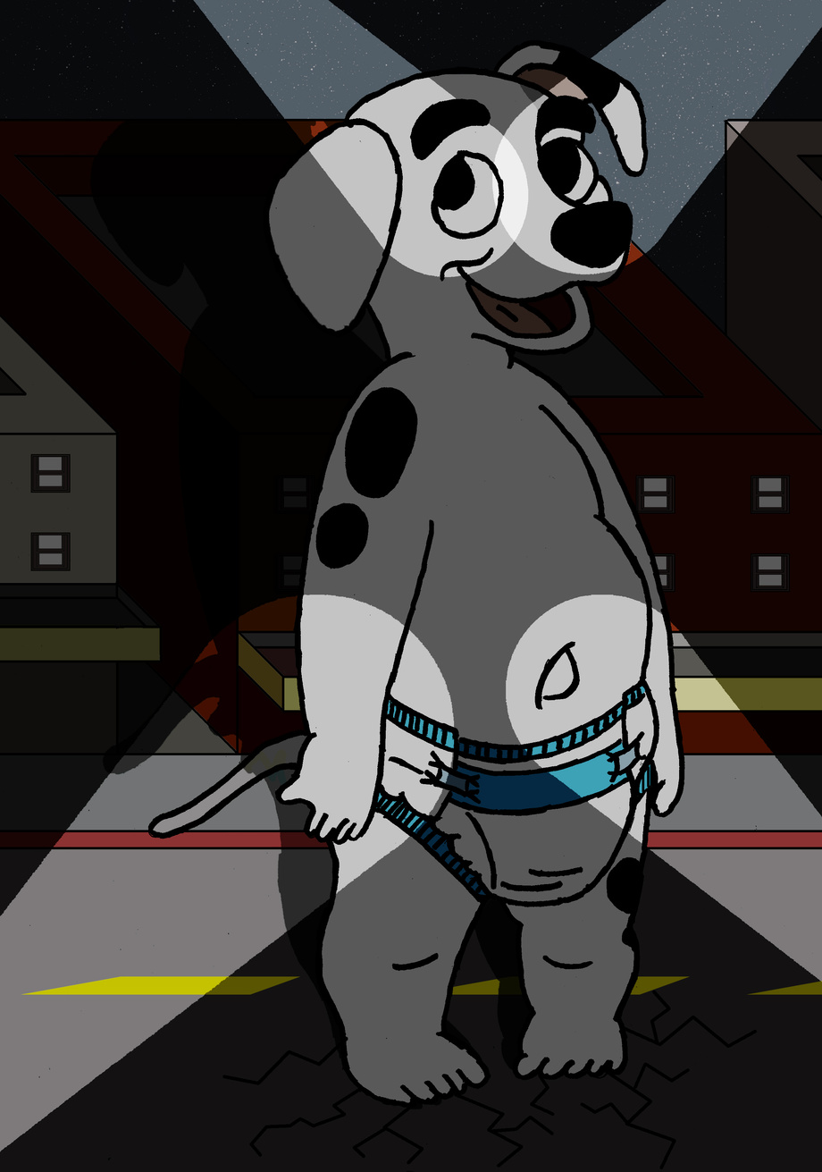 Well here is another pic from my series of giant pics. Having got a large number of giant pics of 101 dalmatian characters like Patch, Pongo etc and my own character Danny I decided to do have something a little different. This time I decided to a macro pic that has some links to the Disney film "Honey I blew Up the Kid" which is a story about a baby that suddenly starts growing bigger and bigger and ends up being over 100 feet tall! This is my own version of the giant baby except this is no ordinary giant baby but Noah. Another character of :icon101dalfan: which just like the film has been hit by a growth machine and has grown to over 100 feet tall in a matter of hours. This is not related to my fictional story the 101ft dalmatian but it's somewhere along the lines of the same thing except this time it's a chubby little baby dalmatian and not a giant boy like Patch. I saw a pic of this cute little guy here at: https://101dalfan.deviantart.com/art/Noah-346129294 along with a number of other pics with him in and Reggie and I just had to draw him! If this pic is a success then who knows what's next. Only time will tell.