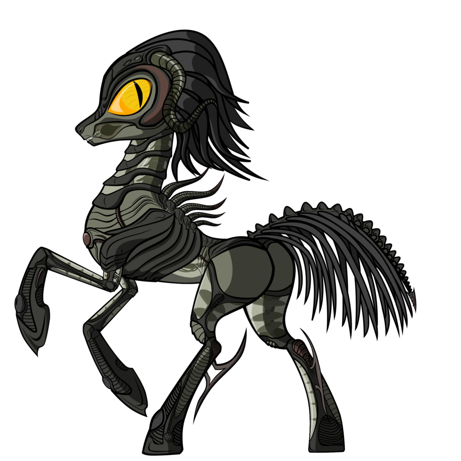 Artists Note: Well after a long time (nearly a month!) she is completed! this is Hoshi Kama's Alien Form! isn't she beautiful!? I really wanted to bring back H.R. Giger's Style, Look, and Feel to this character while keeping with the MLP feel as much as I could. as I said before, expect A LOT more of this character. she is my favorite right now. and she's an OC I am proud of.