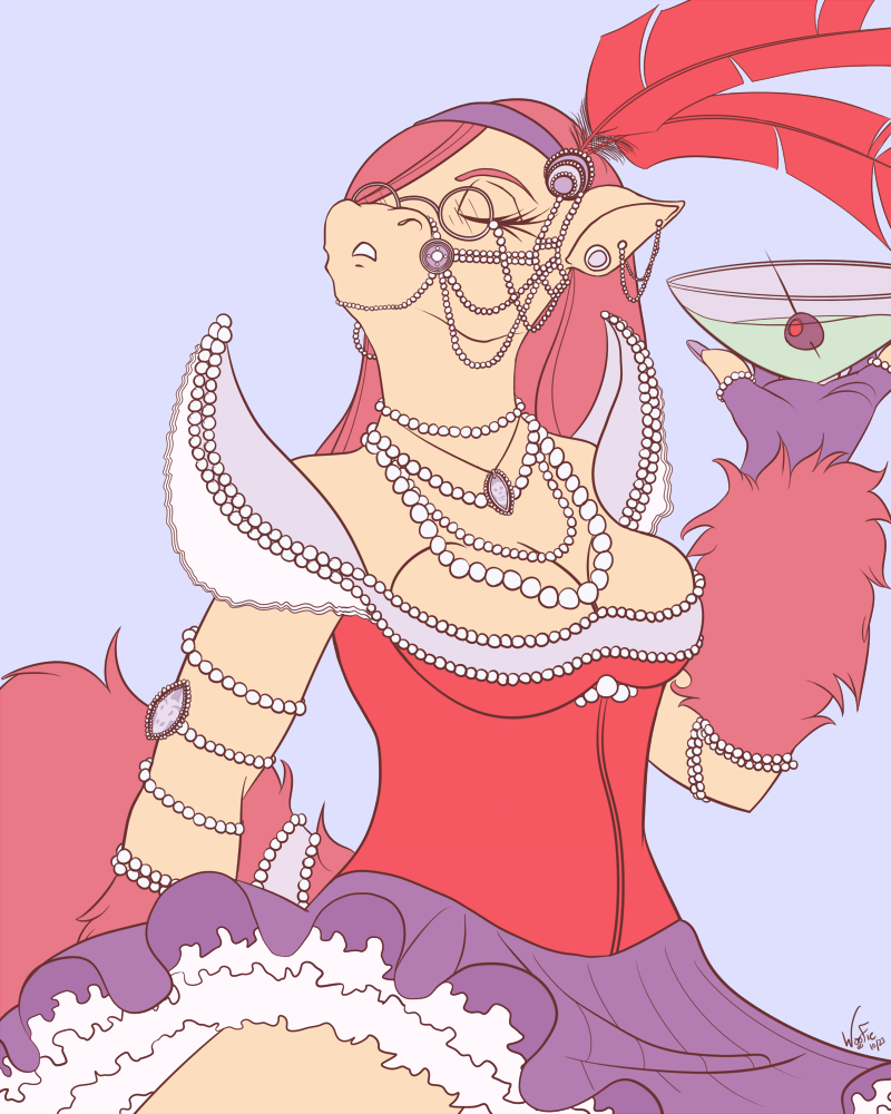 No one in particular, just a snooty pony, in a saloon girl dress. And LOTS of pearls.