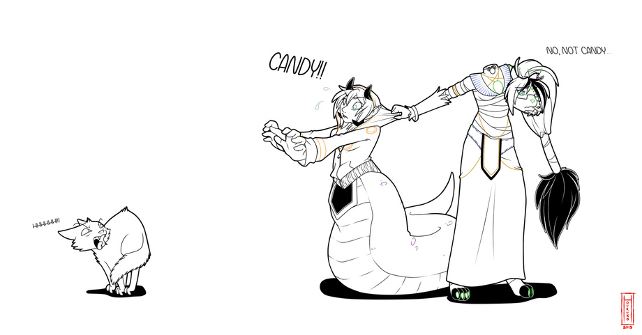 My buddy Twilightjackalope got this for me as a birthday gift :D I guess Jemma isn't the best person to go trick or treating with... Also, Rozlynn has no head. Who knows why!