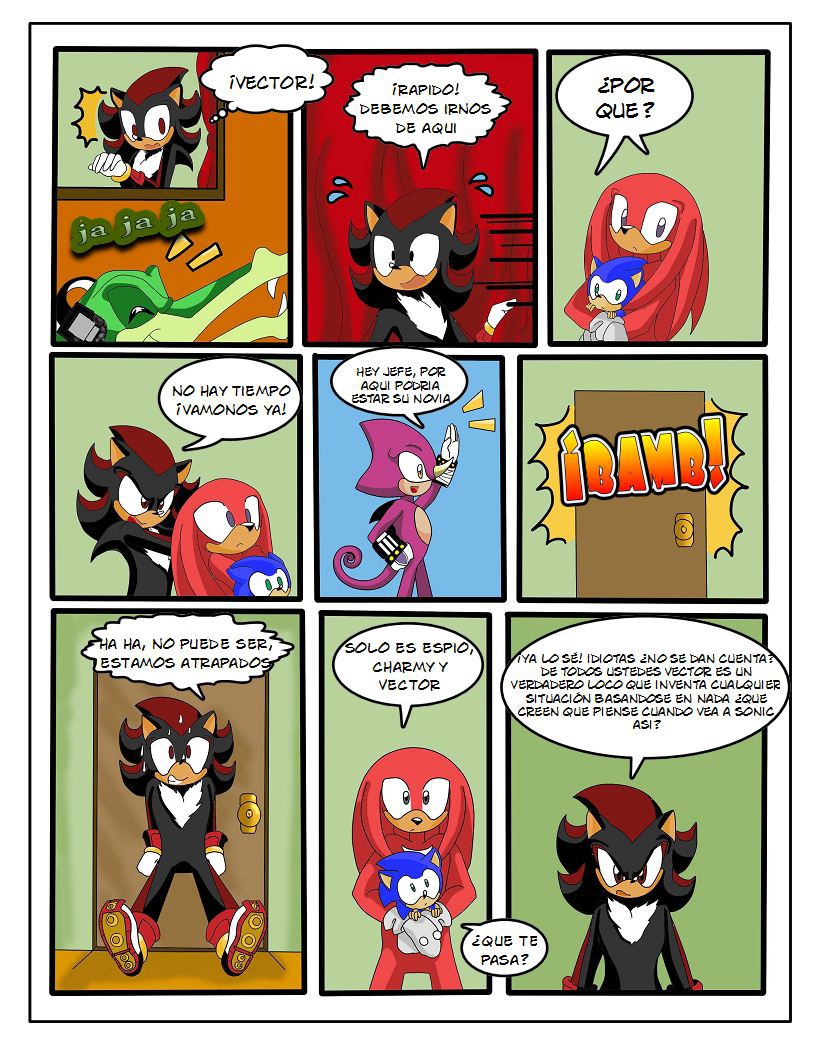 guao estoy impresionada parece que fue ayer cuando comenzaste esta historia y ya llegaste a la pagina 100 me alegra mucho lo que has logrado y me encanto la pagina a color me agarro de sorpresa que fuera a color eso me impresiono y me encanto y entiendo la reacción de shadow ese vector es un problema