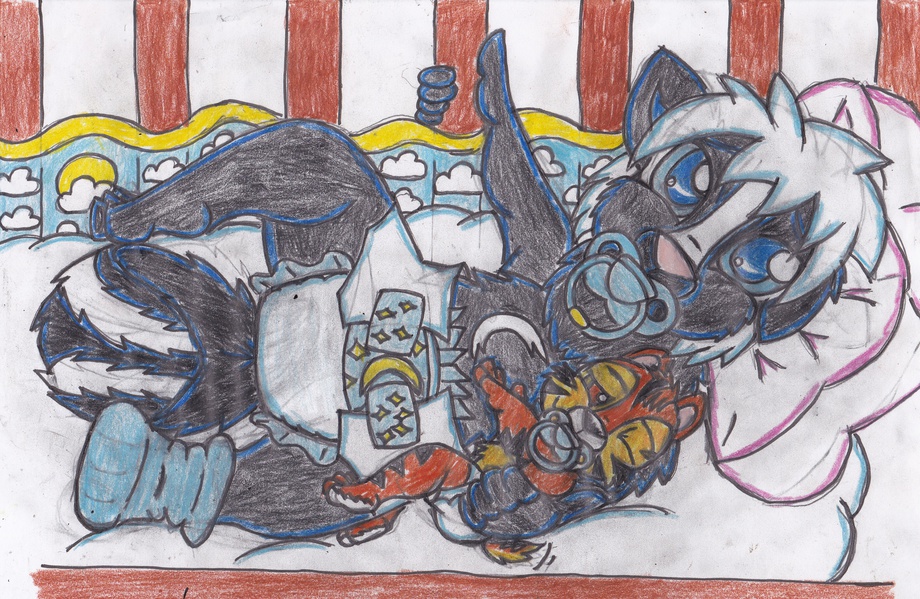 This pic was done by gfgr on DA, and right after we got a new crib IRL. Hehe