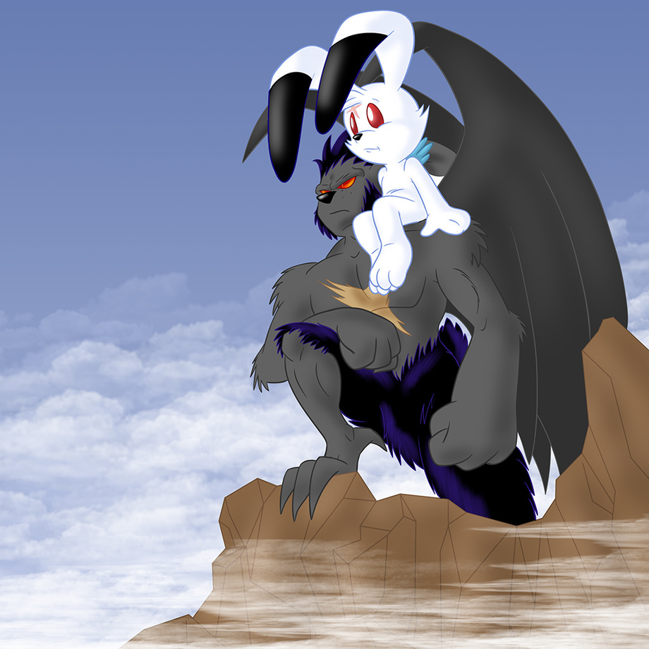 They're both rabbits actually...I guess I can say that one is a "fairy-bunny" while the other is a "gargoyle-rabbit" <=)