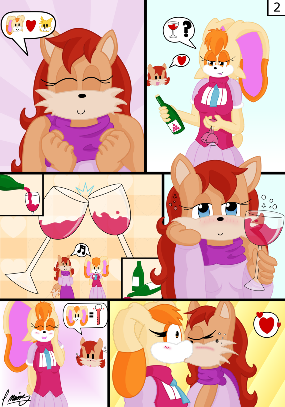 Page 2 of my comic idea :3 Yay for adorable drunken Rosemary. She becomes pretty bold too :D I noticed i drew alot of hearts and chibis on this page. The backgrounds are proving to be abit of a pain aswell. Might have to keep them basic for the next page